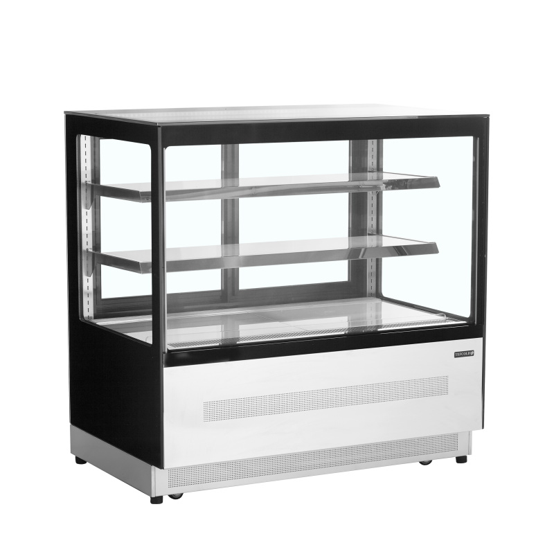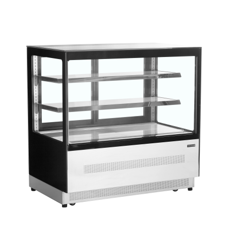 - La vitrine réfrigérée est équipée d'un système de froid ventilé préservant la fraîcheur des aliments, pâtisseries et gâteaux, ainsi que de portes coulissantes à l'arrière facilitant le remplissage et le service.