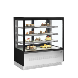 - La vitrine réfrigérée est équipée d'un système de froid ventilé préservant la fraîcheur des aliments, pâtisseries et gâteaux, ainsi que de portes coulissantes à l'arrière facilitant le remplissage et le service.