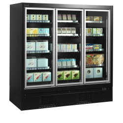 - EXTRA Multideck est une vitrine réfrigérée à froid négatif haut de gamme à portes battantes à double vitrage afin de réduire la consommation d’énergie et les coûts de fonctionnement.