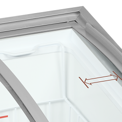 Congélateur coffre avec couvercles coulissants vitrés bombés