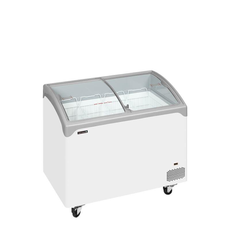 - Congélateur coffre élégant avec couvercles coulissants vitrés bombés