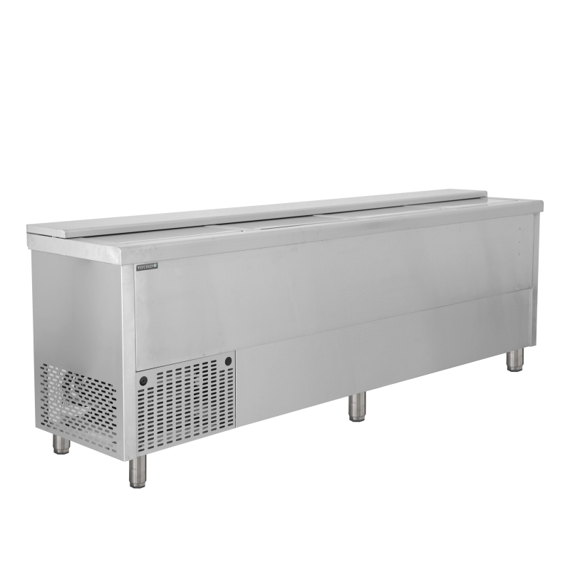 - Grâce à un intérieur spacieux conçu pour les bouteilles et les canettes, il est très facile à remplir de façon ordonnée pour gagner du temps pendant le coup de feu. Les couvercles très pratiques permettent de servir rapidement les clients, à leur plus grande satisfaction.