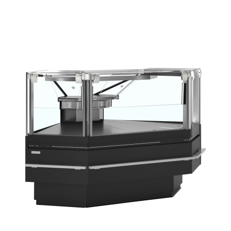 - Cette vitrine de service présente un design raffiné, avec un vitrage anti-buée, un éclairage LED plongeant, et un plan de travail spacieux en acier inoxydable qui reste frais grâce au froid ventilé et aux bouches d’air à l’arrière du plan de travail.